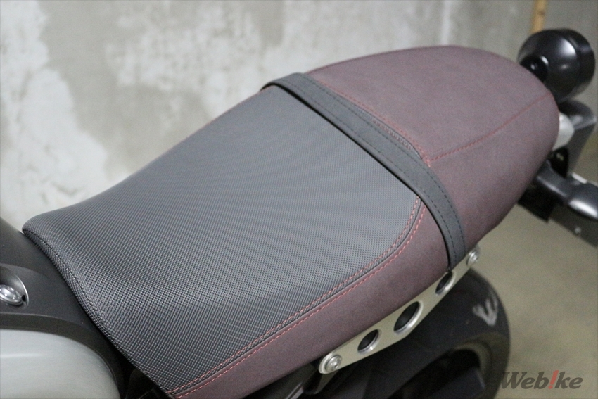 分成酒紅色與黑色兩區塊的典雅時尚坐墊,表層具有高質感與紮實的乘坐感,相信即使是長距離的旅遊騎乘屁股也不容易疼痛。