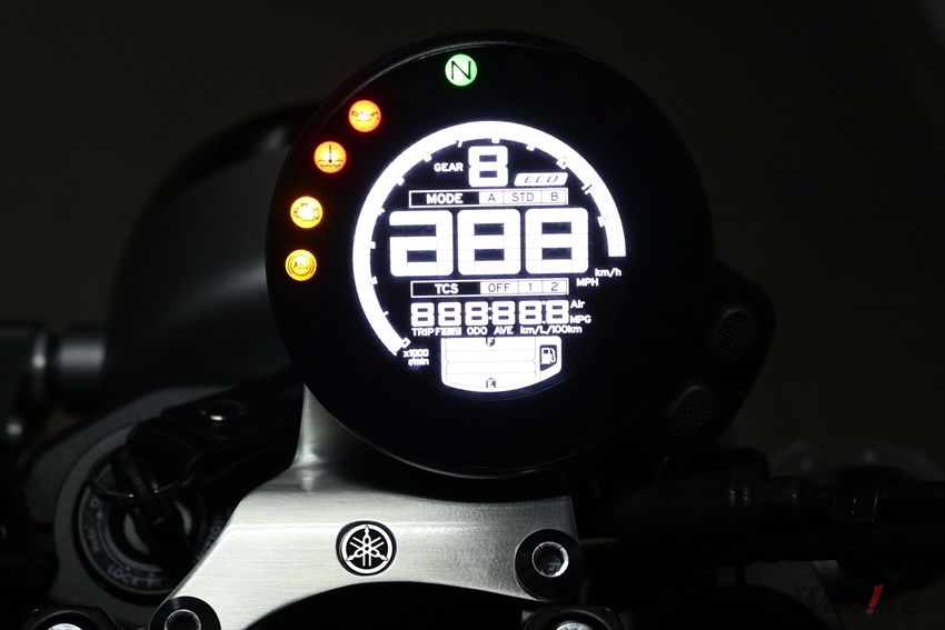XSR900附有循跡控制系統,所以萬一起步或是加速時發生後輪空轉的情況,電子控制系統將會介入予以輔助。
