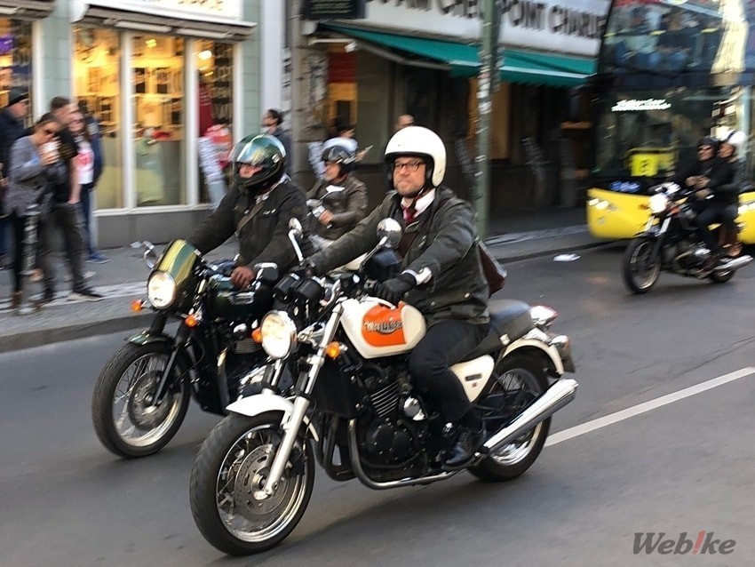 過了幾秒後就出現一群穿著雅痞的騎士集團從筆者眼前悠然地騎過。筆者甚至還看到了騎著頗有年代感的古典摩托車、穿著燕尾服帥氣騎過的老紳士。筆者當時在德國過得糊裡糊塗,根本不知道那天有這場活動,一直到看到這些摩托車經過眼前才恍然大悟。