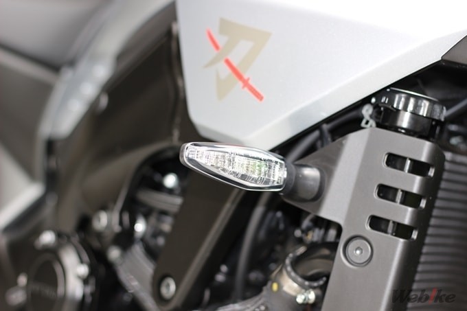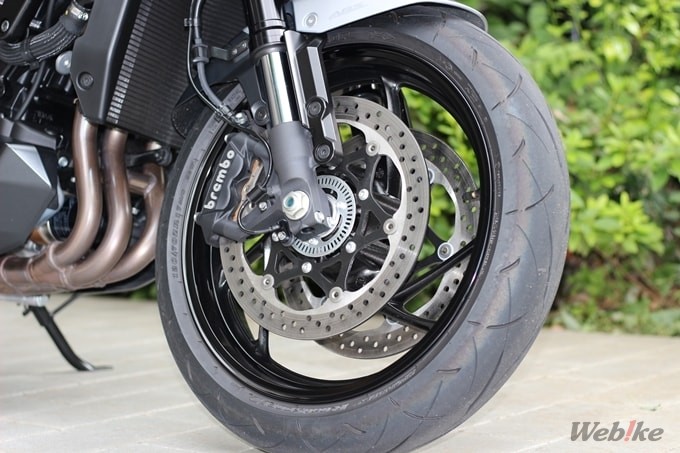 前輪煞車裝上了Brembo製的輻射卡鉗,所以煞車性能完全沒問題,配合KATANA調整過的倒立式前叉也讓人能享受到舒適的騎乘樂趣。