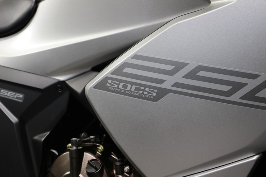 GIXXER 250是輛街車車款,同樣搭載全新研發的油冷式單缸引擎,與有著整流罩的GIXXER SF 250相比,GIXXER 250的外型相對簡潔俐落。