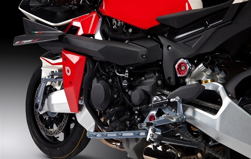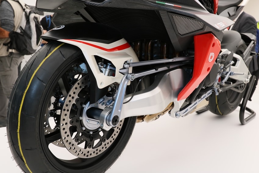 此外,TESI H2還在後搖臂內側加上2支Ohlins製的避震器,在配置上完美呈現出Bimota的經典設計,或許這台車是像TESI-3D那樣,透過推桿來讓前避震器作動也說不定。