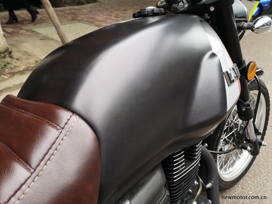 ▲棕色復古皮質座椅和磨砂灰油箱搭配,油箱容量高達16L。