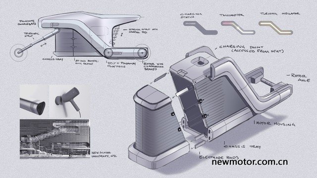 從整體外形來看,該款電動摩托車酷似字母“Z”,為了保證車輛能有更加平穩的動態性能,“Z”型電動摩托車將電池部分安裝在車輛底部,從設計圖中來看呈可拆卸式,但拆解過程相對麻煩,車輛傳統系統也盡可能隱藏以保證整體協調性。