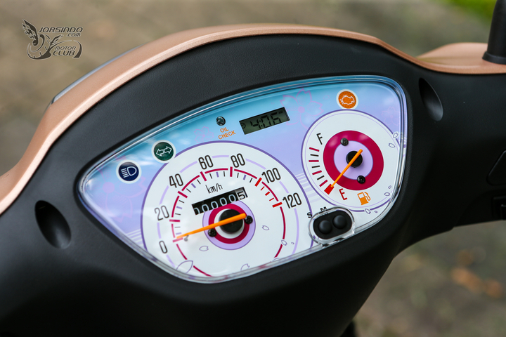 有別於一般車款以單色為設計的儀表, woo 115 採用了大膽活潑的儀表底色,充滿活力的設計讓視覺上再也不枯燥。除了時速、里程與油表外,上方的液晶螢幕可顯示時間與電瓶電壓,讓你隨時掌握車輛狀況。