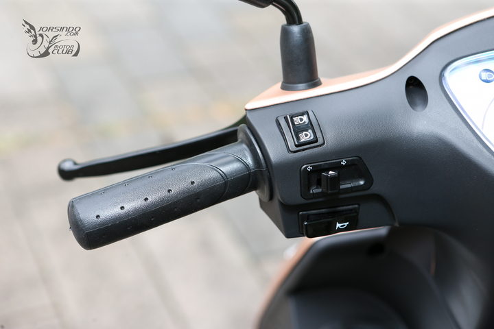 左手把總成;由上至下分別為:遠 / 近燈切換、方向燈與喇叭。