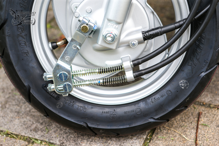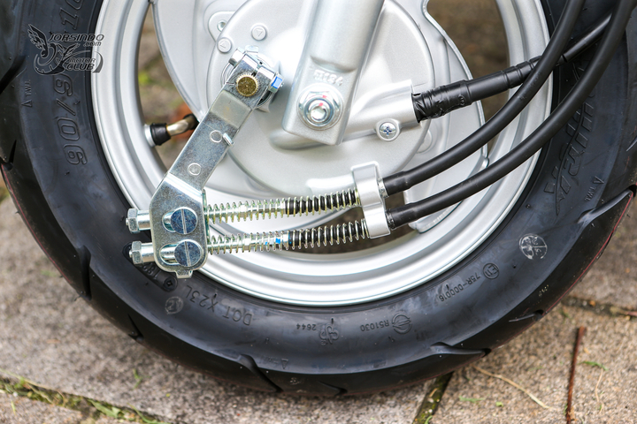 前輪尺寸為 90/90-10 。小輪徑的好處就是強調靈活操控,同時在後續更換上的費用也較為低廉,相當適合小資女或精打細算的家庭主婦喔。