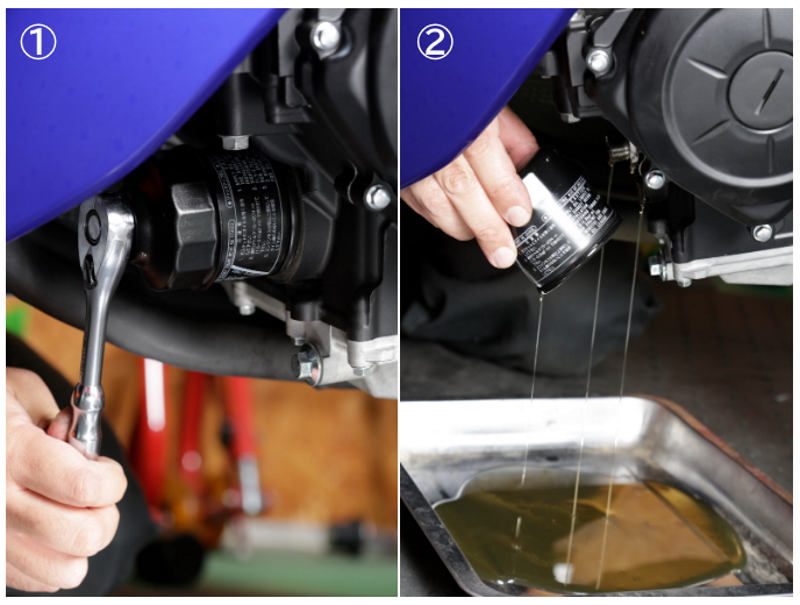 鬆動濾芯時,機油會從與引擎的隨著表面滴落,因此請提前在引擎下方放置一個油底殼。而且,當機油濾芯與引擎分離後,殘留在濾芯內部的油會流出。