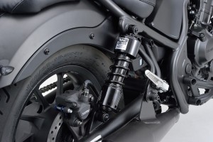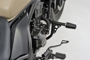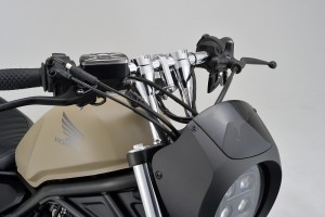 例如縮短了20mm的後避震器,讓REBEL給人一種平易近人街頭風格的印象,墊高6cm的鍍鉻把手座也顯得車頭更高更扎實。
