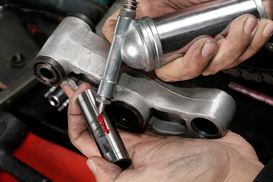 為了更大程度地提高底盤的性能,在過濾小顛簸時,即使是很變化也能充分發揮,所以筆者想盡可能地降低連桿或搖臂樞軸的阻力。假設將負荷響應設定0至10級,面對微小顛簸原本0.1級的負荷做出響應,但是如果潤滑不足,負荷到達2級後搖臂樞軸才開始工作。如果是這樣,昂貴的避震裝置也未能發揮它性能。