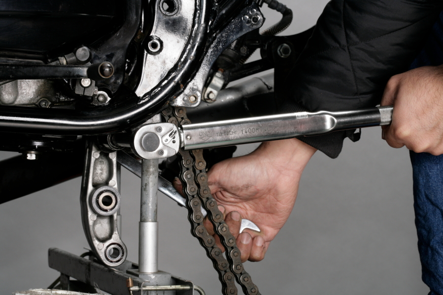 不用說,與懸架相關的零件是如此重要,以至於螺栓直徑大且緊固扭矩大。對於圖中所示的Kawasaki GPZ400F,後搖臂樞軸螺母指定為80 N.m,連桿部分的每個螺母指定為70 N.m。