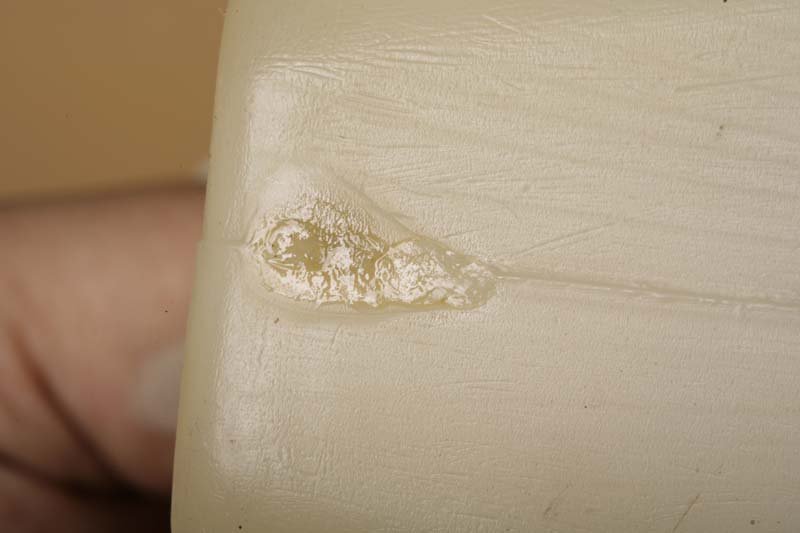 PP材質在 “加熱 “後會由乳白色變成半透明,當變成半透明時代表黏度增加、附著黏度提升,可以將裂痕完全修補起來。但必須注意不要過熱而損壞零件。