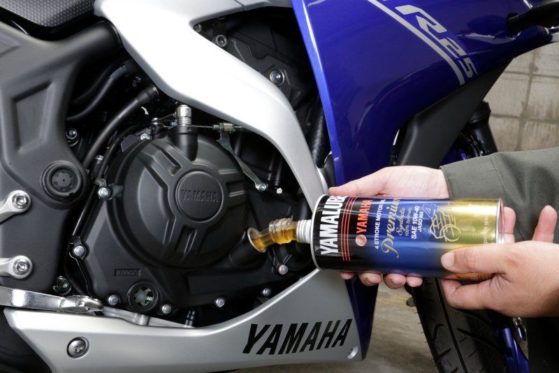 用於排出引擎機油的放油螺栓是為了讓盡將機油從引擎中排出。它安裝在引擎的低處(這樣引擎內就不會有舊油殘留)。同樣也有從引擎底部正後方擰緊的車型,或從引擎前方擰緊的車型,如樣車中的YZF-R25。