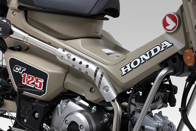 排氣管尾段采用傳統的圓筒設計配上黑金相間的標誌,在造型設計與CT125能完美融合。
