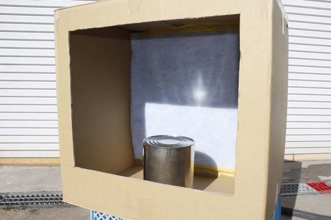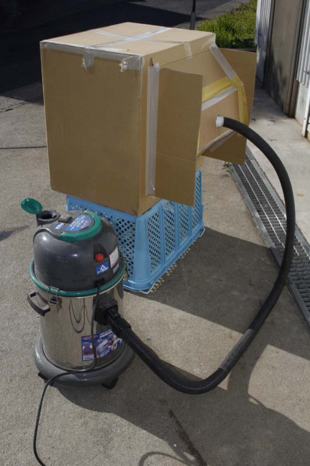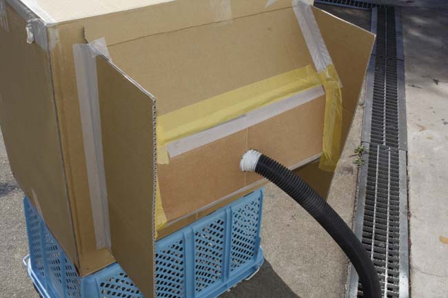 ▲這是製作紙板烤漆房最重要的部分,使用空氣濾心搭配吸塵器就能將烤漆房變成負壓,在噴塗時多餘的漆霧就會被吸塵器吸走。