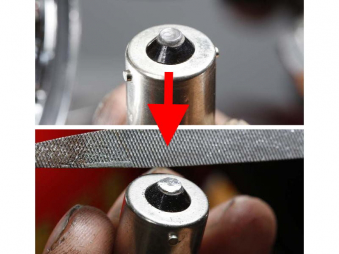 在很多情況下,燈泡底部的金屬接點會因為長時間與燈泡底座摩擦導致磨損,如果間隙變大會導致接度不良、導電性降低,這時候只要使用銼刀稍微修整一下就能改善接觸不良的問題。