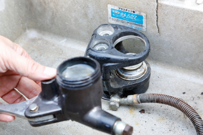 但是,如果卡鉗活塞生銹了,即使用空氣的力量也可能出不來。在這種情況下,就要重新利用液體的力量。