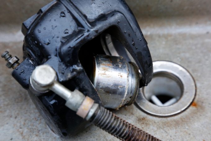 長期棄置的摩托車,最常見的問題之一就是煞車卡鉗活塞腐蝕。即使是堅硬耐用的硬鉻電鍍,也會有生銹的時候,而煞車油本身具有吸水性,也是造成腐蝕的另一個原因,為了維修必須拆下生銹的活塞進行維修,這時,我們的日常生活中的自來水就派上了用場。