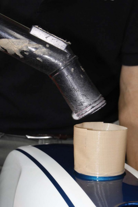 ▲最好提前在油箱蓋口纏上布膠帶,以便固定吸塵器吸嘴。