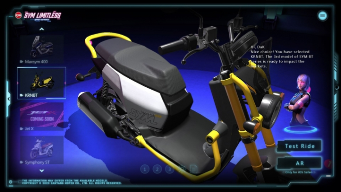 點開 SYM LIMITLESS 的官網後就可以進入線上展間,除了可以旋轉、縮放的 3D 模型之外,還有 AR擴增實境以及小遊戲可以玩。