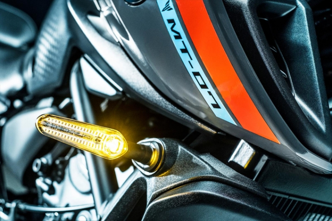 ▲新款MT-07採用LED反射式大燈讓外觀煥然一新,兩旁還有類似於MT-09那樣的倒八字型定燈位燈,油箱容量從13L增加到14L,並結合了側邊進氣口設計。