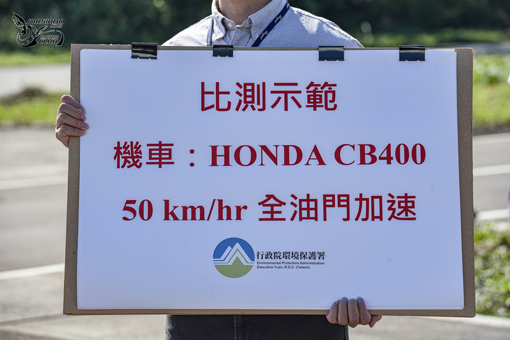 第一項由 CB400 進行比測示範,並連續進行 50km/h、60km/h 全油門的實測,在此需要提醒各位板友,一套系統做完整個比測檢證實驗流程需要耗時半天的時間,此處僅為示範而非實際儀器準度。