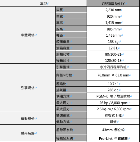 原文出處:[官方新聞稿] Honda Motorcycle 2021 CRF300L CRF300 RALLY 導入確定