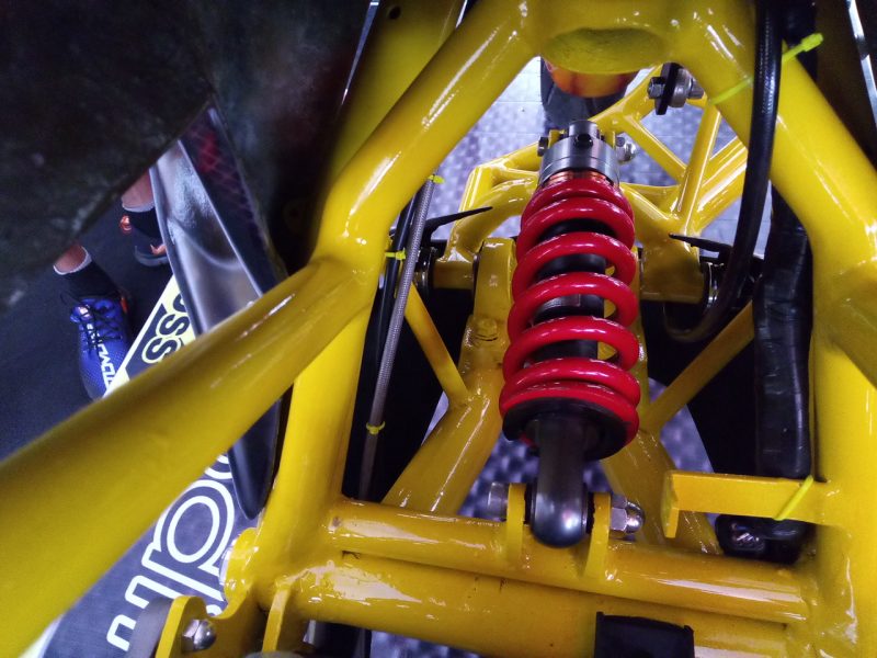 輪轂中心式轉向系統的結構相當複雜,需要經過連桿間的互相牽引才能達到轉彎目的,而安裝在車身中心的避震器居然是前懸吊用,後避震器則安裝在CVT變速箱上,而且還是多連桿結構。