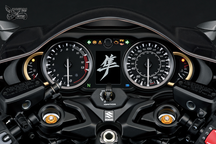 而看到把手就絕對不能錯過這次改款中,帥到令人停止呼吸的數位類比混成四環錶,由左至右分別是油錶、轉速錶、時速錶、水溫錶,中央則是矩形的 TFT 全彩儀錶,且為了提升資訊判讀性,儀表上所有的標記或是燈號等都稍微加大了一些,如此一來騎士就可以不需要盯著錶看也知道車輛狀態,而當騎士轉下電門,中央的 TFT 儀錶會跳出殺氣騰騰的「隼」字樣。