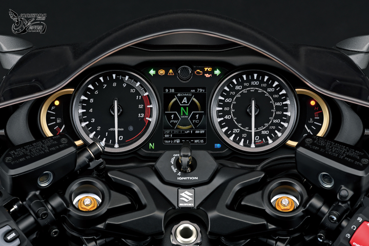 而本次改款一大重點就是全新導入的 Suzuki Drive Mode Selector Alpha(SDMS-α)電控系統,騎士可以透果把手上的控制鍵調整各項電控系統的設定,並在中央顯示目前的段數等資訊,而第三代 HAYABUSA 導入了六軸 IMU,因此在特定顯示模式下還可以看到騎乘傾角紀錄。