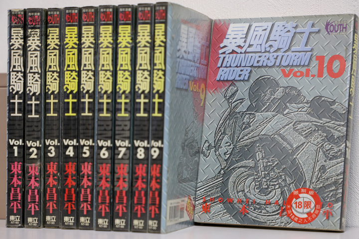 在我心目中這漫畫就是騎士的聖經。舉凡你聽過前輩講、看過雜誌說,那些既中二但又很酷、關於形容騎車或是騎士的方式幾乎都能在這部作品內找到。1996 年第一刷的漫畫,我想這是很多經典名句的出處。暴風騎士目前出到 39 集,我也不確定國內是否全部都有中文版發行,我自己是看到約 30 幾集。因為這漫畫實在是太難找了!大學時期跑遍了漫畫出租店才終於有機會拜讀 (沒多久就倒了…)。而在這之後就開始嘗試收二手書。不過目前也還沒收齊。