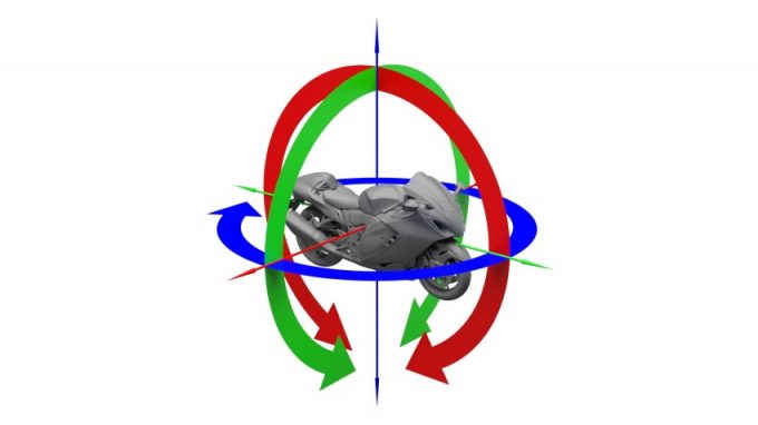 ▲透過IMU測量三次元活動的摩托車的傾斜角、俯仰角與迴轉角。