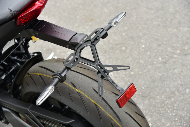 鋁製的短牌架配合新款 LED 方向燈相當洗鍊。