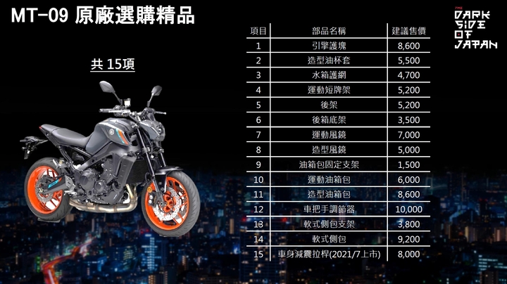 YAMAHA MT-09 建議售價 : 49.8 萬元
