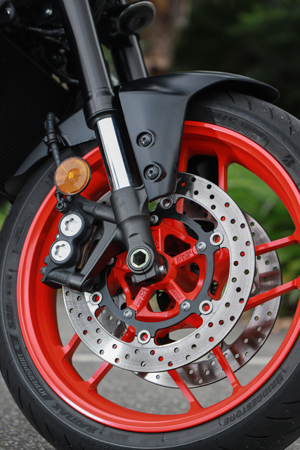 前叉外管長度縮短、前後懸吊作動行程減少,懸吊的支撐性與阻尼感也都有所加強,透過這些變動集中整車質量,再加上從車架、搖臂到輪框都經過輕量化,新款 09 無論是直線、還是過彎,穩定性與靈巧性皆全面提升!