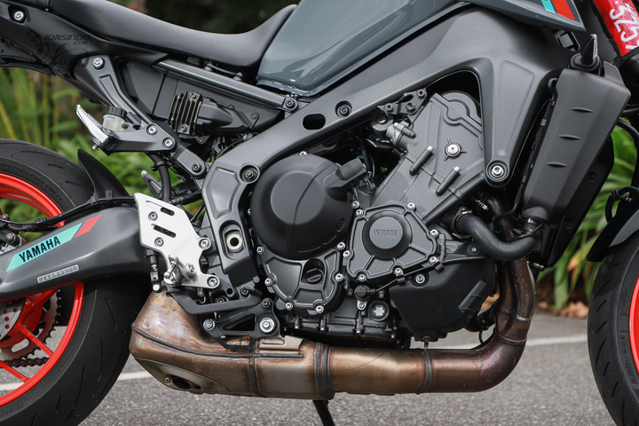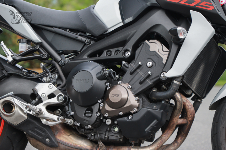 排氣量由 847c.c.c 提升到 889c.c.,在維持相同缸徑 (78mm) 的同時增加行程 (59.1mm→62.1mm),很明顯是為了加強扭力的更動方式。除了排氣量提升,車輛還採用更輕的鍛造活塞、曲軸與連桿,相同轉速下新版 MT-09 更為暴力。