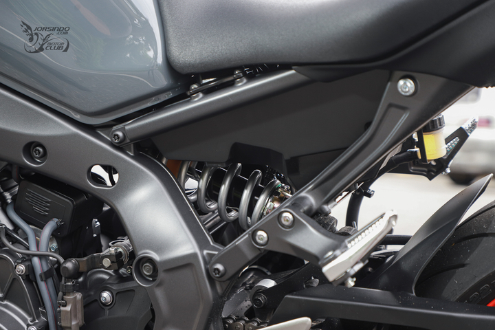 後懸吊部分的行程也由 130mm 縮短為 122mm,並且具備回彈阻尼與預載可調。此圖也能看 2021 MT-09 大幅度裸露出主、副車架,十足的 Naked 啊!