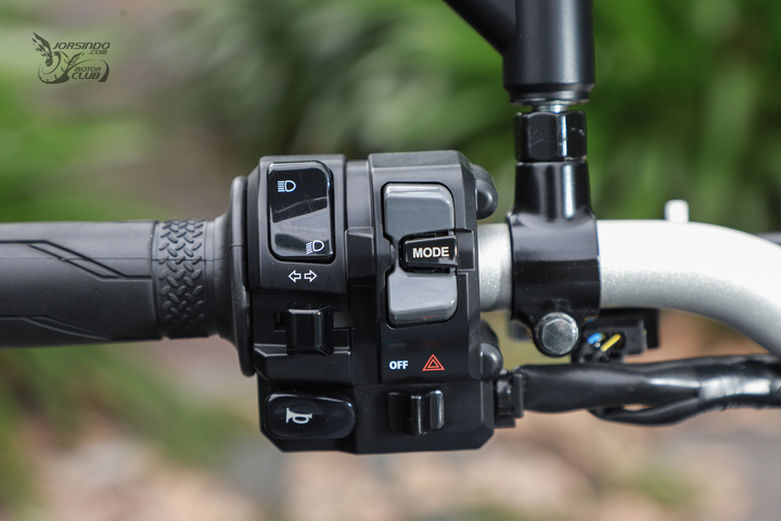 左側開關則是遠近燈、方向燈、喇叭、雙黃燈,以及最重要的騎乘模式調整按鈕。