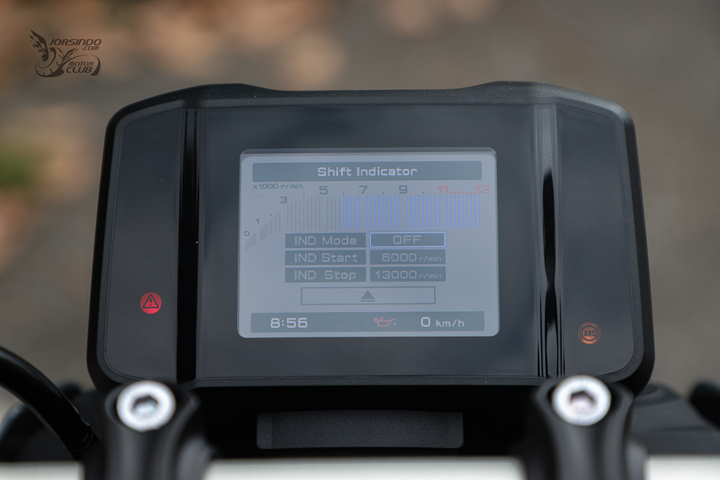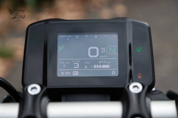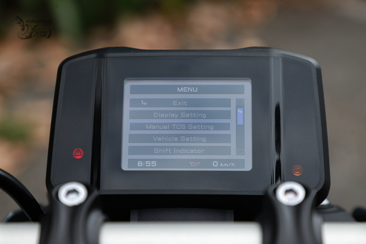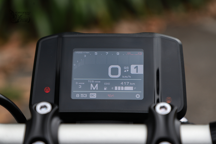 懷著期待的心情轉開電門。嗯、對!沒有開機動畫 (離題了)。有鑑於加入了大量電控系統,車輛採用 3.5 吋 TFT 全彩液晶儀錶,小巧、緊湊的外型十分適合 MT 車系整體外型。