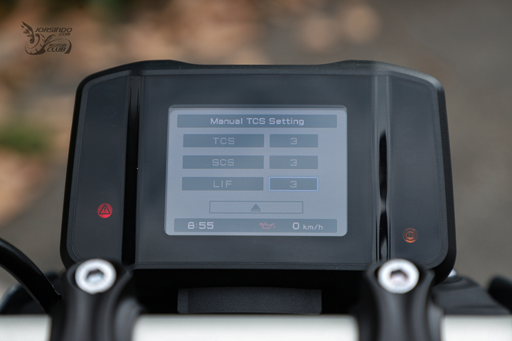 主畫面的 TCS-MODE 會直接影響循跡、滑動控制以及防孤輪三項,調整 TCS-MODE 三項參數會一併改變。當然、也有 M 模式讓騎士自行設定細項,且依照喜好有 1 到 3 段與關閉可設定。
