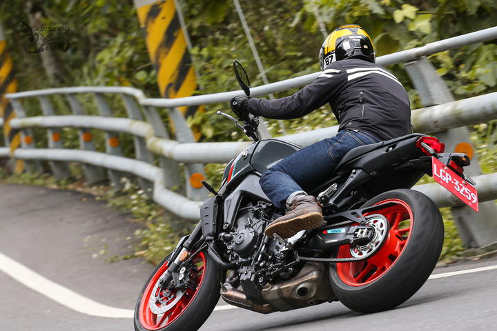 有接觸過 MT-09 的車主應該都知道這是輛頗有趣的非典型街車,有著滑胎車般的騎乘三角,懸吊與車體的動態也相對傳統性能街車柔軟一些,雖然靈巧、容錯性高,但有時會覺得懸吊與車架不夠硬朗。因此新舊相比,若以相同的速度進出彎,新 MT-09 游刃有餘的同時,舊款可就讓騎士覺得在極限邊緣了。唯一要注意的地方在於新 MT-09 的龍頭舵角很小、跟跑車一樣,所以低速迴旋時必須特別注意。