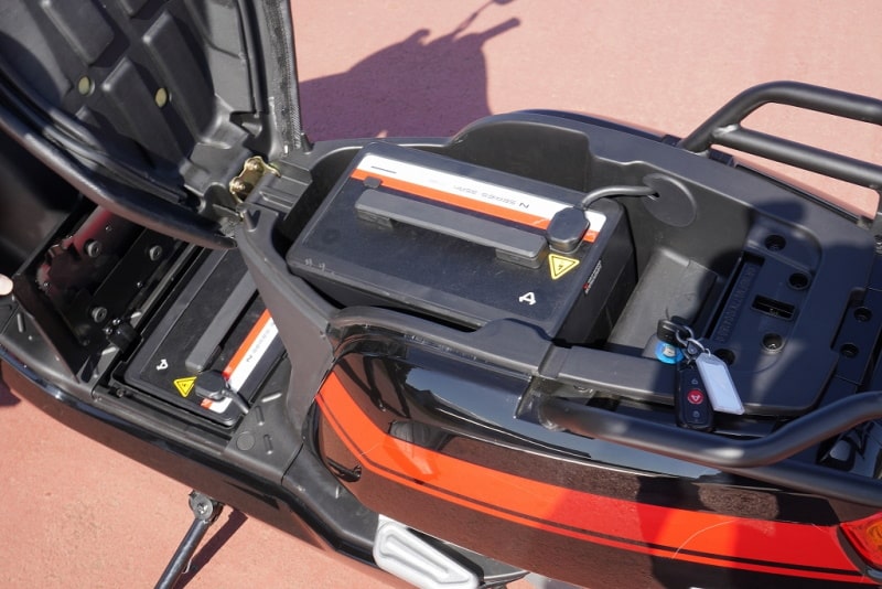 NQi GT在前整流罩上有一個大大的圓形頭燈,整體帶點可愛復古感,作為原付二型 (51~125cc)車款,最大優勢就是配備兩顆電池,且電池可拆卸或直接連接車輛充電,便利性相當優異。