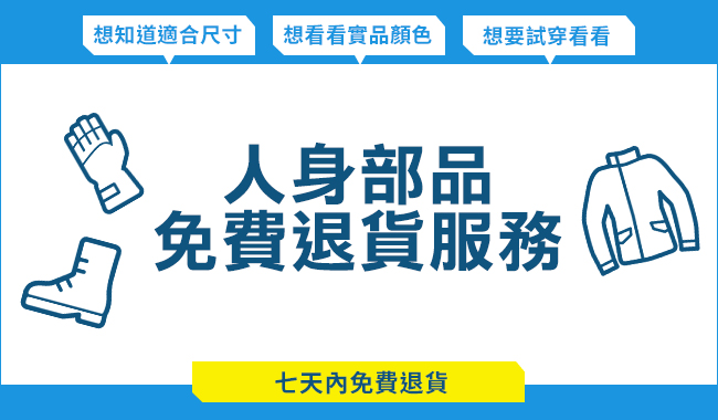 你擔心的,Webike都幫你想到了!Webike摩托百貨的商品(部分除外)有提供免費退貨服務!