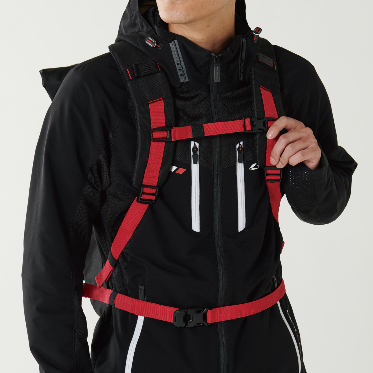 超強的防水性能(主收納袋與前口袋)、25L的大空間容量,以及總計7個置物袋和反光條設計。
