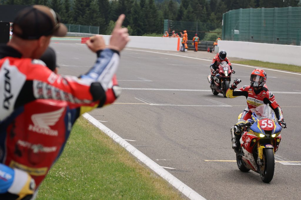 National Motos Honda在Dunlop Superstock Trophy組別中獲得頒獎台,恢復了他們在FIM世界耐力杯中爭冠的希望。作為一家法國Honda摩托車經銷商和EWC的老牌參賽者,這支車隊在比利時賽事中獲得勝利,總排名上升至第三名,而Team 33 Louit April Moto在激烈的競爭中獲得第二名。Honda No Limits在法國利曼開幕戰中排名第四,在比利時SPA賽事中獲得第三名,暫時總成績升至第二名,僅落後冠軍三圈,擊敗了新的積分領先者Chromeburner-RAC41-Honda,贏得最後一個頒獎台的位置。National Motos的Sébastian Suchet對這場艱苦奮鬥的勝利感到高興。他表示:「這是一個與我們習慣的賽道非常不同的賽道,但這場比賽的真正挑戰是我們的對手,他們整場比賽都沒有放棄追趕我們。」