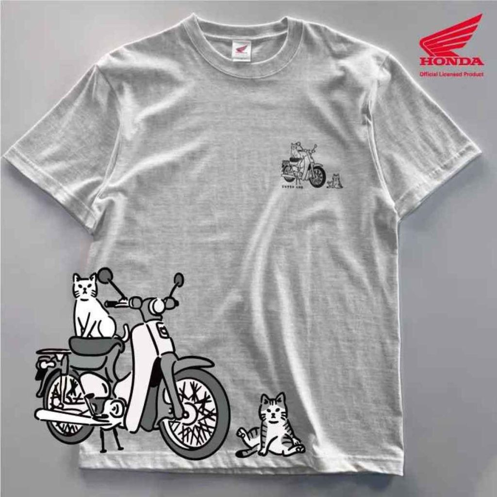 琳瑯滿目地展示著時尚設計的Honda Super Cub等款式T恤。