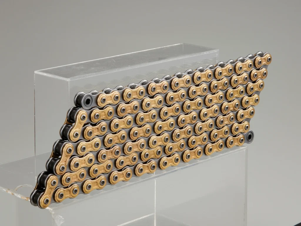 內鏈片也設有凹陷,似乎是將密封環嵌入其中。各個鏈片看起來也非常薄,可見其儘可能地實現輕量化。順帶一提,這款鏈條無法在公共道路上使用,主要還是用於收賞、欣賞之用。