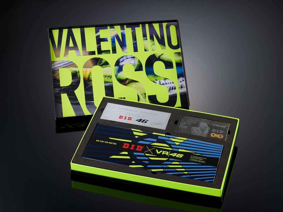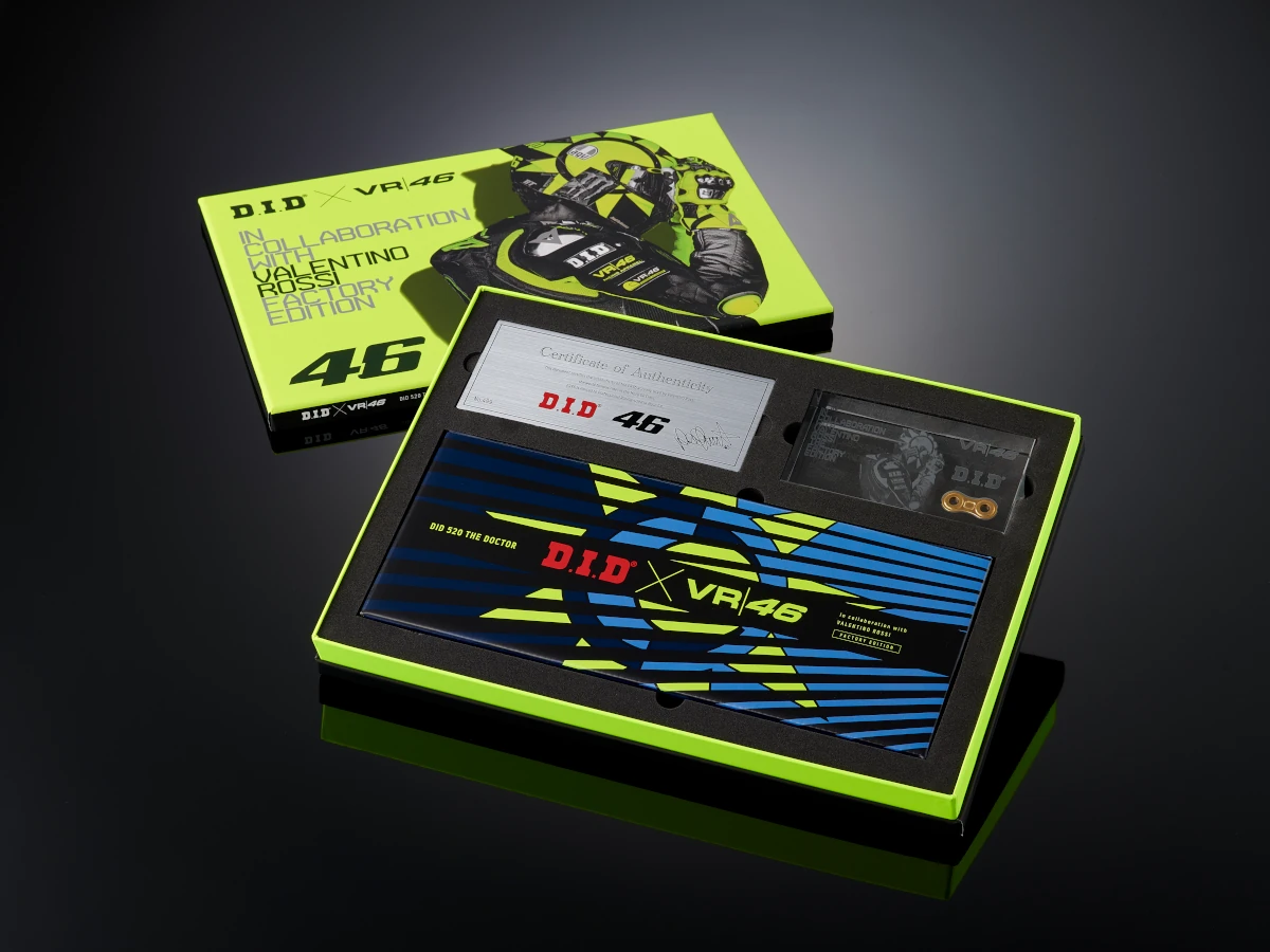 Valentino Rossi 被譽為「永恆的傳奇」 ,成就了無數偉業。曾為Rossi打造專屬傳動鏈的鏈條製造商 DID,如今推出了 Rossi 曾在現役時代所使用的傳動鏈「520THE DOCTOR FACTORY EDITION」,僅在日本抽選出售,限量30套。價格為含稅104,632日元,從11月1日起可在DID的官方網站上申請。