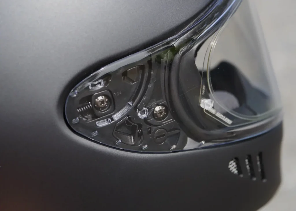 鏡座基部透過彈簧按壓鏡片,調整密合度,鏡片拆裝僅需One-Touch單手操作。還配備了抑制騎乘風亂流的渦流通風結構(Vortex Ventilation)。