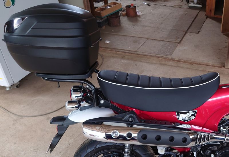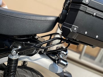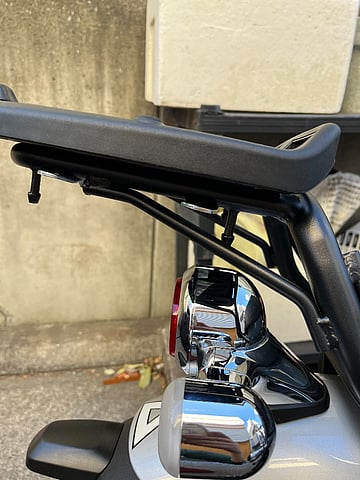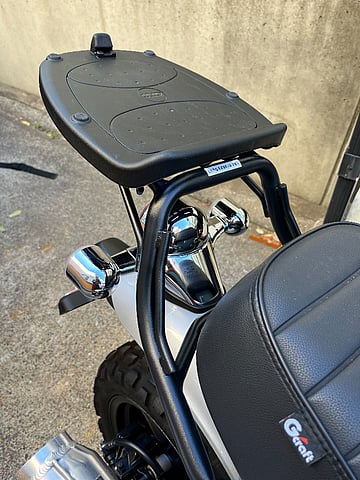 「…我用的是 GIVI 43L,(裝了這款貨架後)在開關坐墊時會卡到。但這款(ENDURANCE)各處的用料厚度都不同,耐重有 8kg。我之前在 Z125 上也用過同- 牌子的貨架,對我個人而言很有信賴感。」